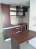 Cocina integrada con barra desayunadora, muebles bajo mesada y alacena, con cocina y anafe electrico.